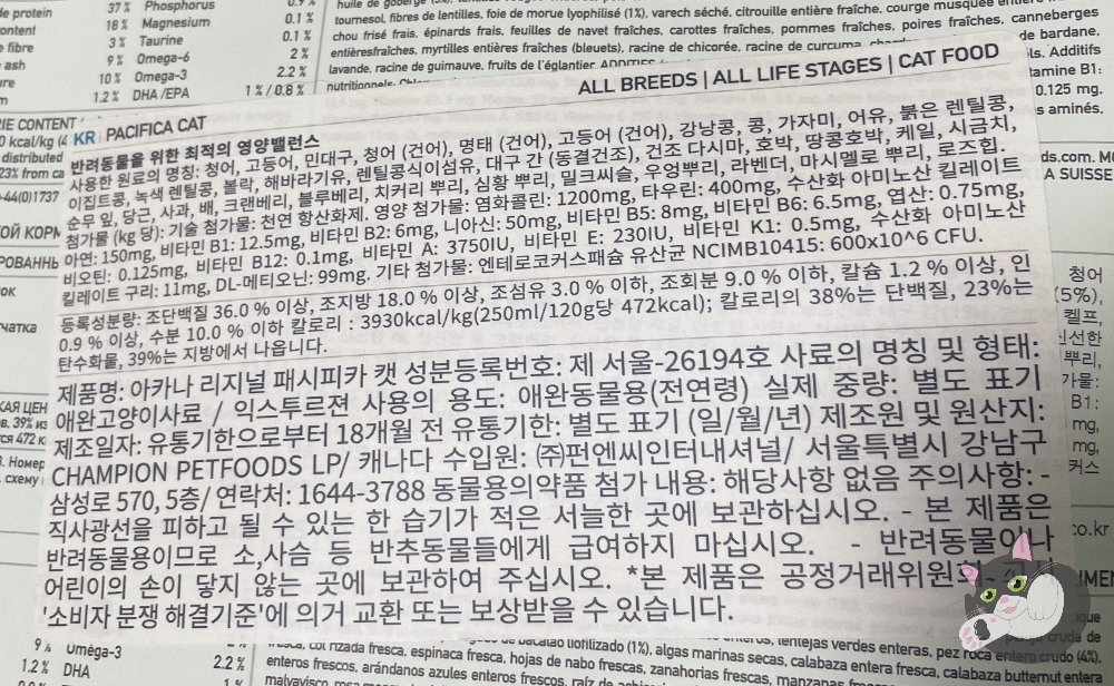 #아카나 패시피카 캣 사료 성분